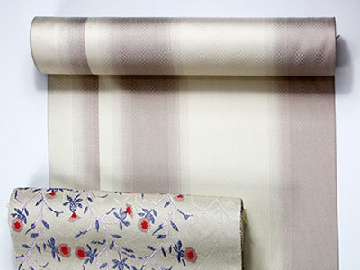ジャガード織で織柄を表現したり、たて糸の配色を変えてグラデーションを表現したり、織りの色無地として製作した商品もあります。 また、夏や、単シーズンに着装出来るきものも取り揃えております。
